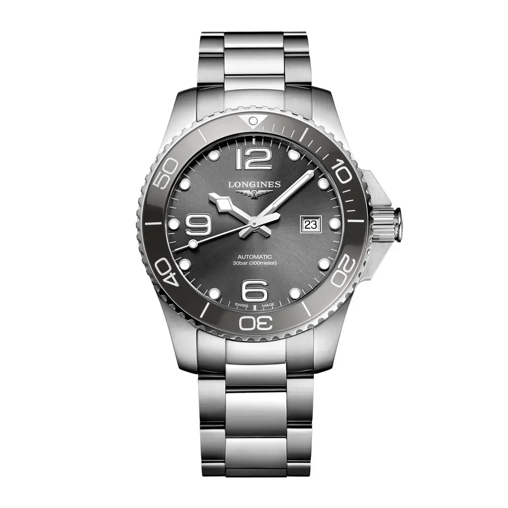 Longines HydroConquest L3.782.4.76.6 结合了 瑞士精密制表技术 与 现代运动风格设计,专为拥有 活跃生活方式且品味出众的男士 而打造。其 直径43毫米的不锈钢表壳 显得坚固而优雅,搭配 灰色模拟表盘 和 夜光指针及时标,即使在光线较暗的环境下也能清晰读时。