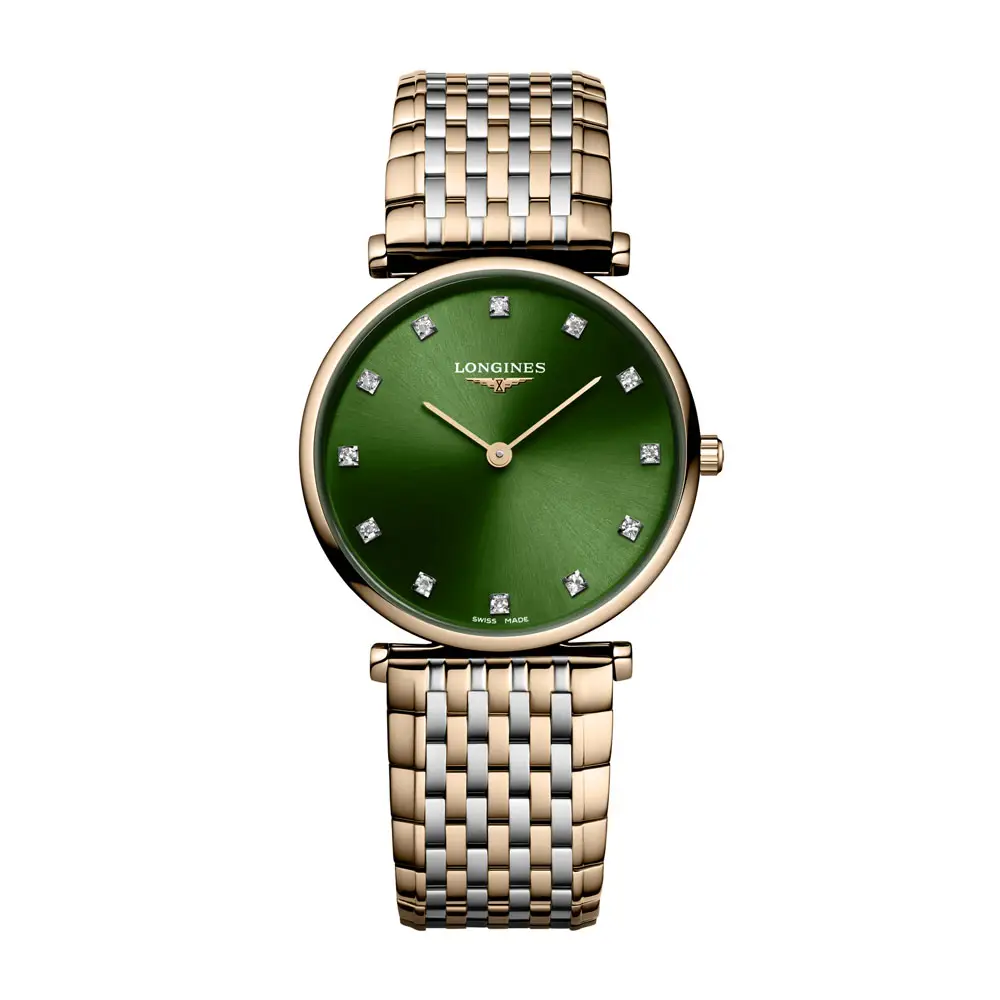 腕表搭载 瑞士石英机芯 L420,确保精准与稳定。配备红色 PVD 精钢表链与 三重安全折叠表扣,佩戴舒适稳固。此表完美展现浪琴表的核心理念——传统、优雅与细节之美。
