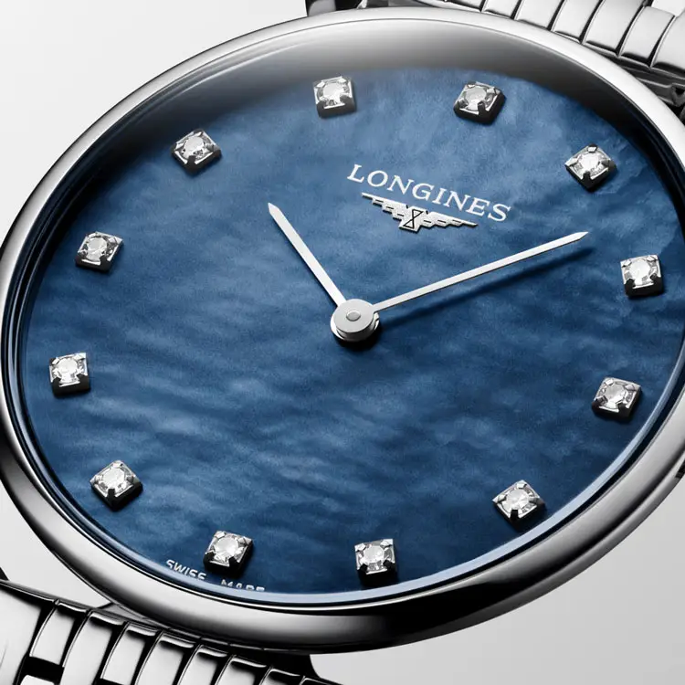 腕表搭载 瑞士石英机芯 L420,确保精准与无忧使用。配备 精钢表链与经典表扣,佩戴舒适稳固。此款腕表完美展现浪琴表的核心理念——传统、女性优雅与细节之美。