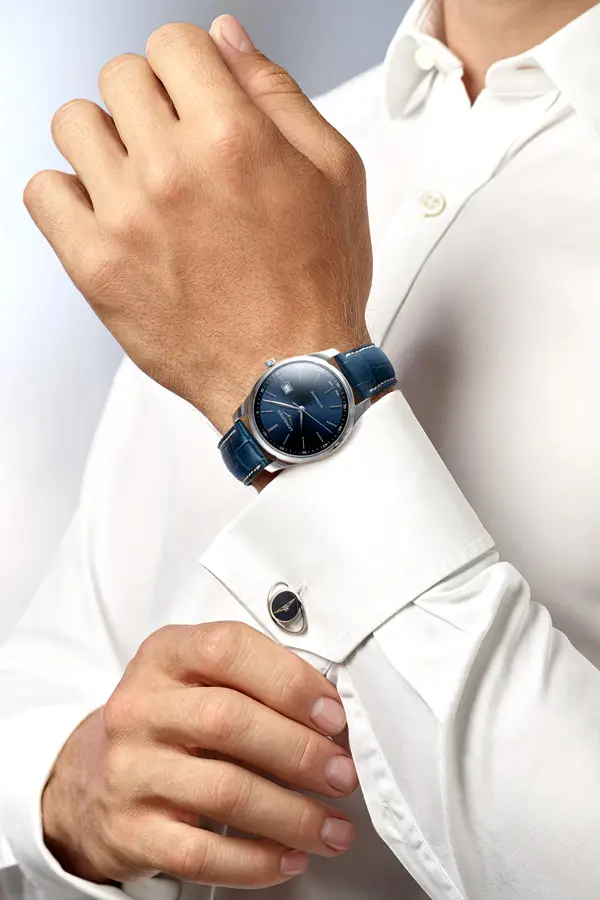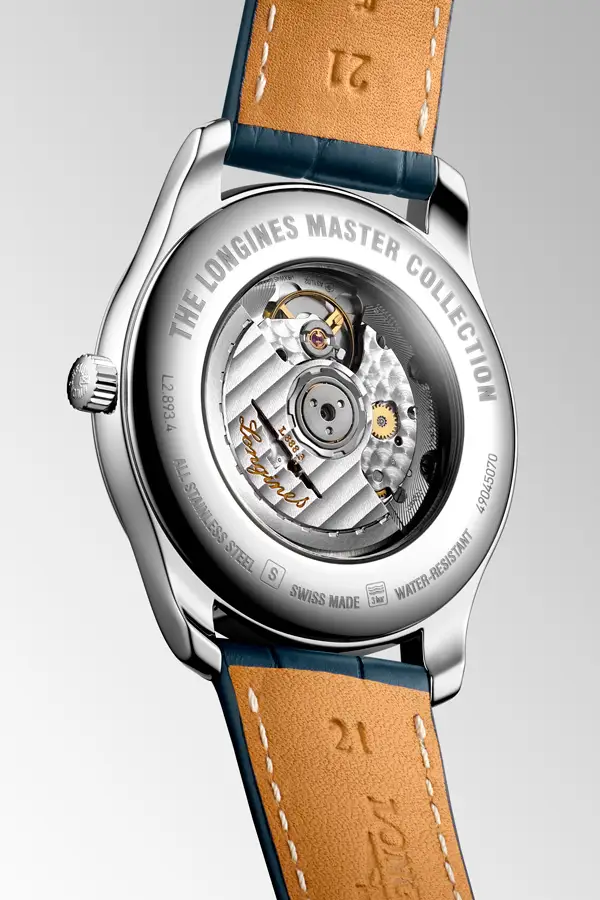 浪琴表 Longines Master Collection L2.893.4.92.0 是一款优雅的男士腕表,展现浪琴的核心价值——传统、精准与永恒之美。42 毫米精钢表壳配备双面防眩蓝宝石水晶镜面,搭配蓝色鳄鱼皮表带与折叠扣。