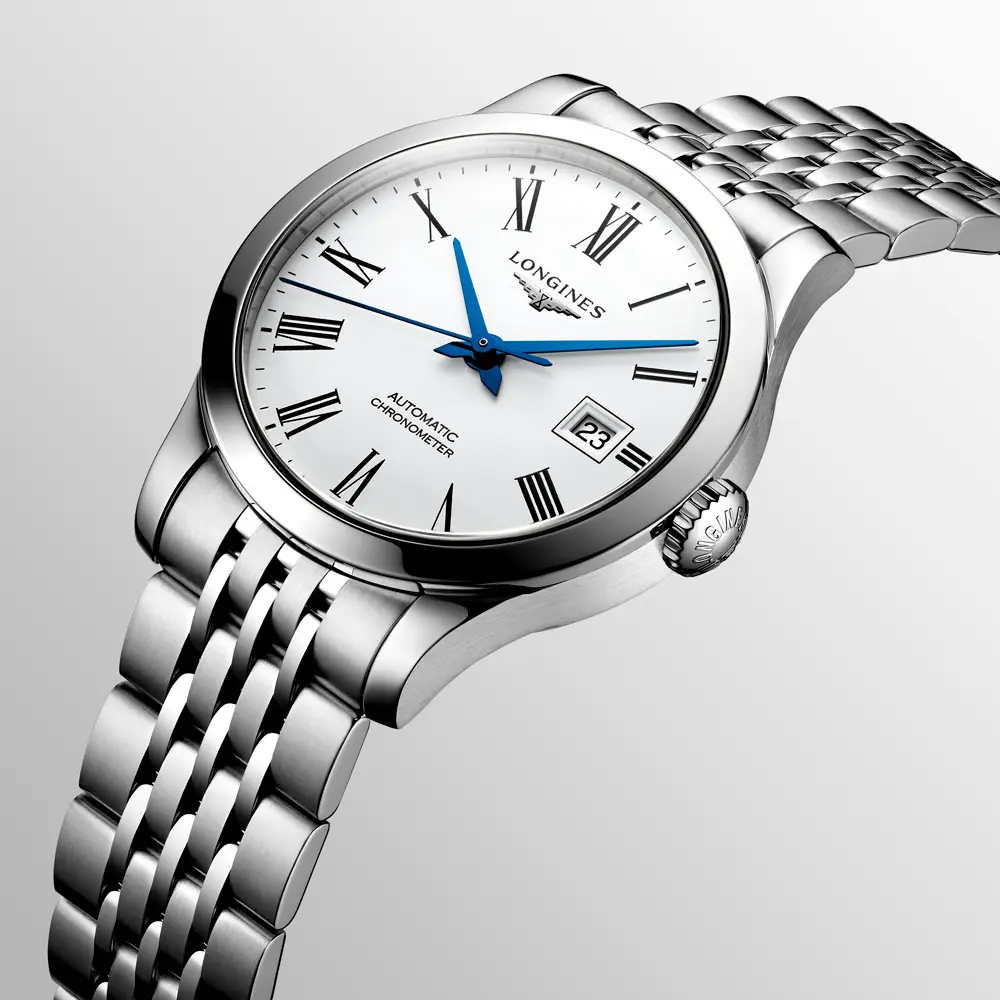 Kolekce Longines Record je poctou tradičnímu hodinářskému umění značky a jejímu neustálému úsilí o dokonalost. Každý model této řady je vybaven mechanickým strojkem s automatickým nátahem, který je certifikován švýcarským institutem COSC (Contrôle Officiel Suisse des Chronomètres) – záruka mimořádné přesnosti a kvality.