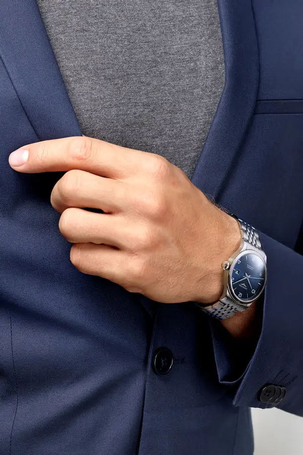 精钢表链搭配折叠式表扣,佩戴舒适安全。具备 30 米防水性能,Longines Record L2.821.4.96.6 是追求 优雅、品质与瑞士制表传统 的绅士的不二之选。