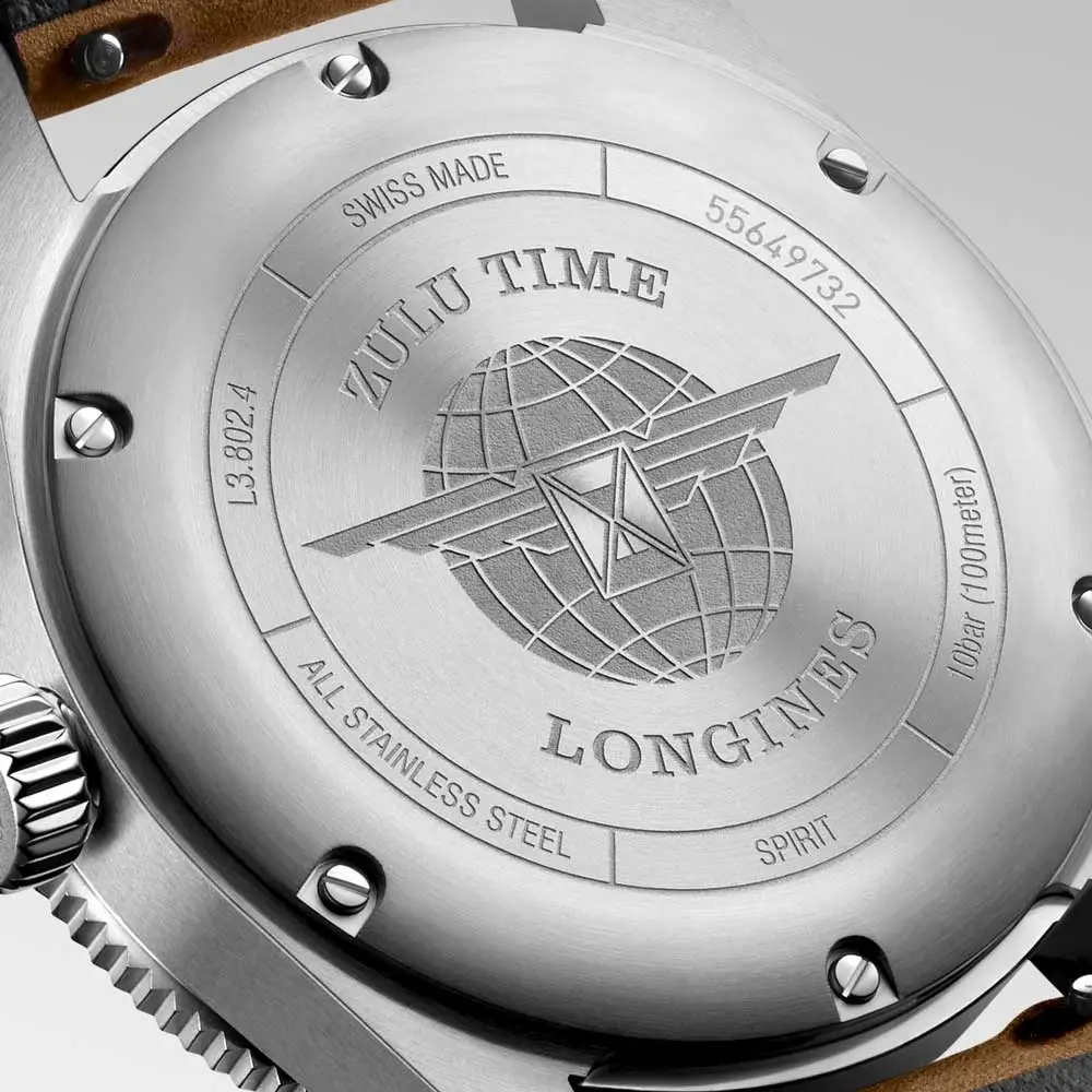 浪琴表 Spirit Zulu Time L3.802.4.63.2 是一款优雅的旅行腕表,配备 GMT 功能,融合航空传统与多用途风格。39 毫米精钢表壳搭配旋转表圈和陶瓷圈口,便于快速读取 24 小时刻度。