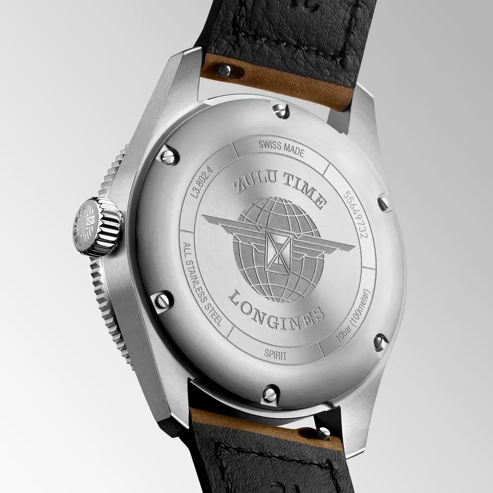 具备 100 米(10 巴)防水性能,腕表配以 皮革表带,并配备可微调折叠表扣。浪琴表 Spirit Zulu Time L3.802.4.63.2 是追求 可靠 GMT 功能与紧凑设计 的理想之选。