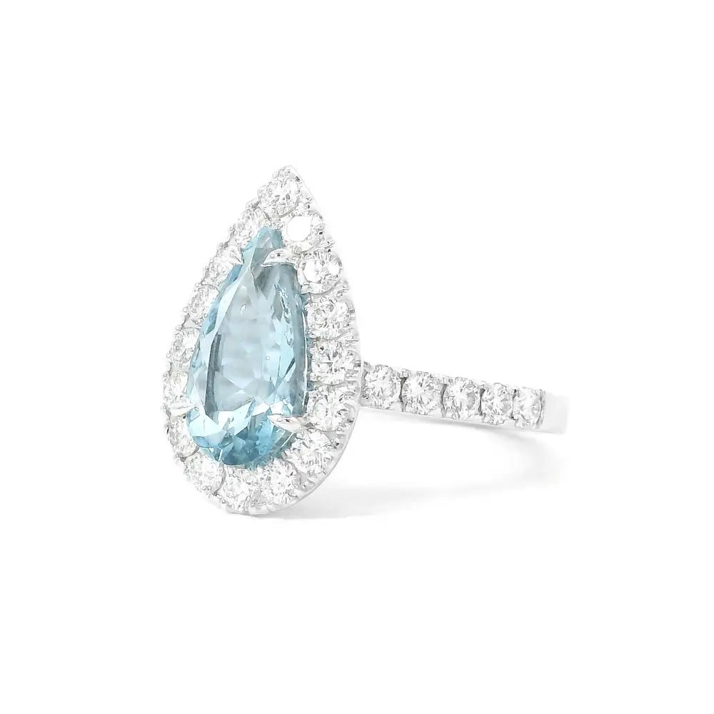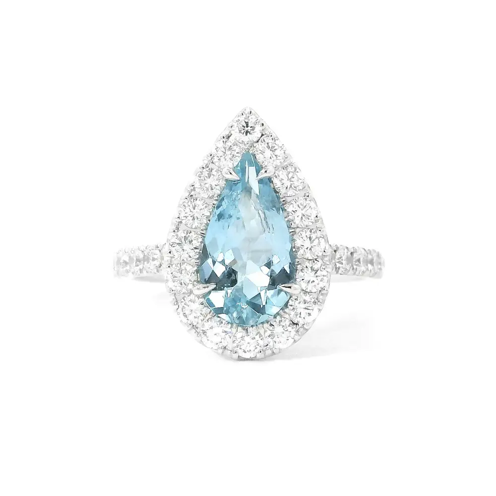 奢华水滴形戒指,镶嵌海蓝宝石和钻石