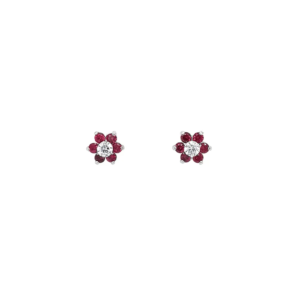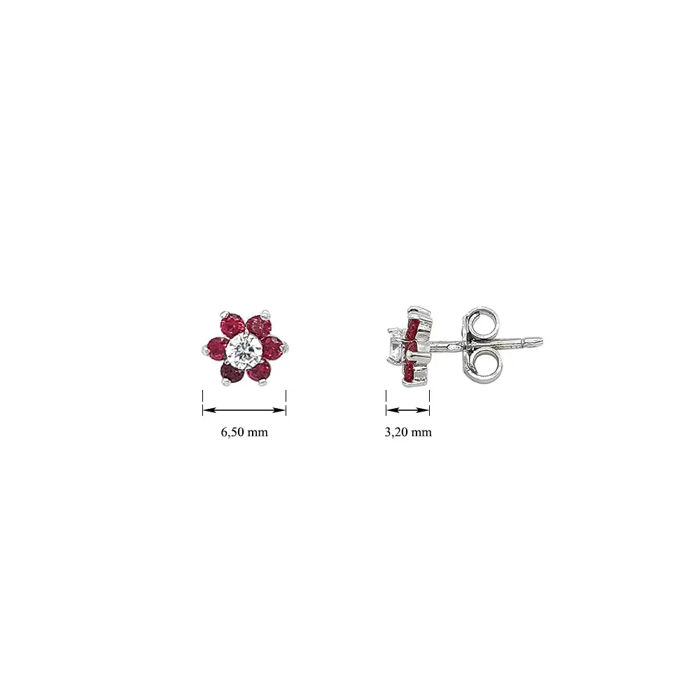 镶嵌红宝石和透明宝石的奢华花朵耳环