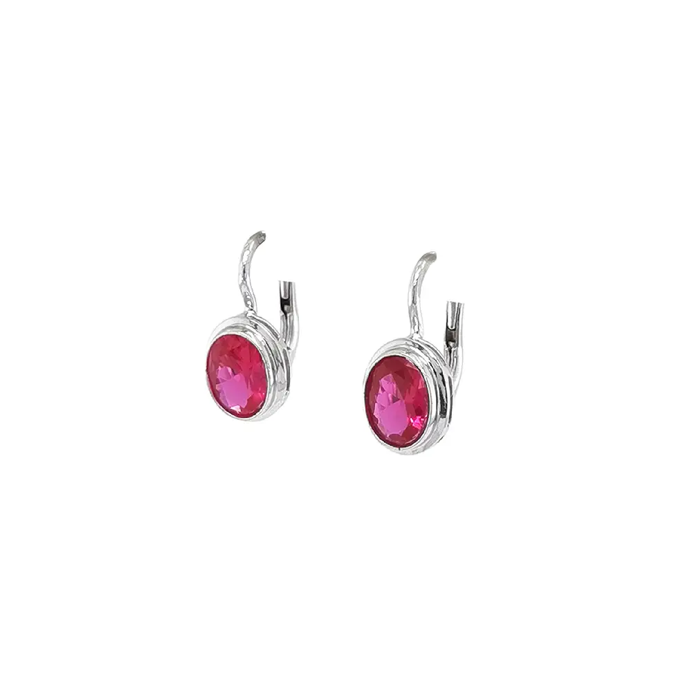 奢华白金耳环镶典雅红宝石