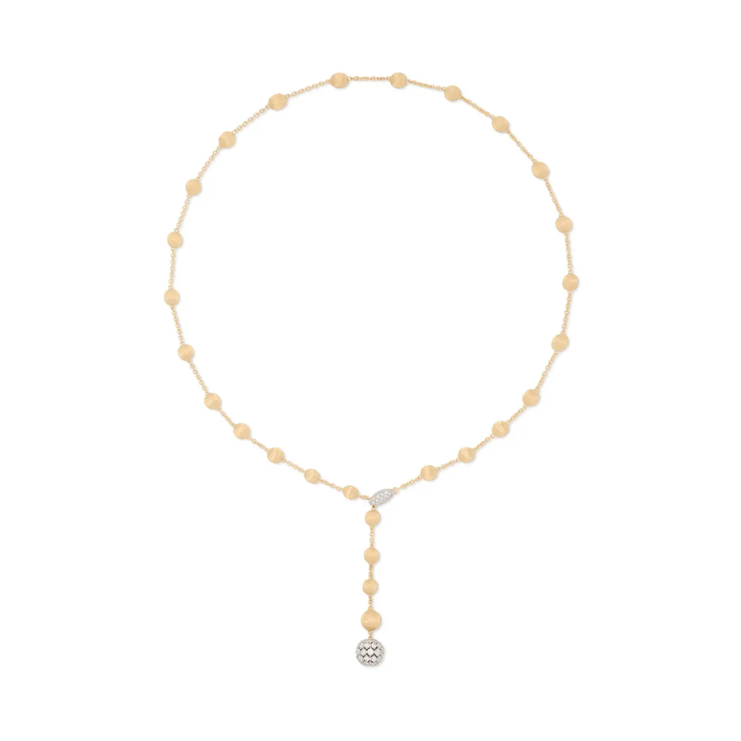 这款 Marco Bicego Africa Alta CB2900-B B2 YW Q6 项链来自 Africa Alta 系列,以现代造型结合意大利金工技艺。整体采用 18K黄金,搭配标志性的 boule 珠状 lariat 造型,展现柔和流动与平衡美感。 详细的产品描述