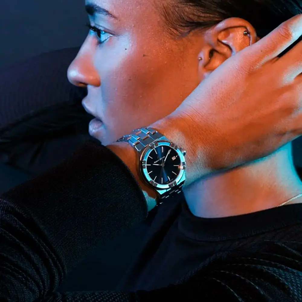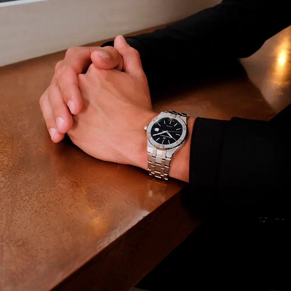 Aikon是艾美表的旗舰系列,以独特的视觉形象体现现代运动的优雅。该系列的灵感来源于上世纪 90 年代的标志性Calypso表款,但以现代形式重新演绎,强调鲜明的线条、建筑设计和一体化表链,这也是该系列的主要特色之一。