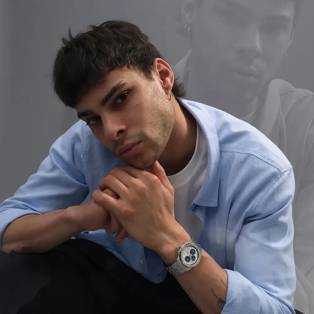 六臂式月牙形表壳是 Aikon 的典型特征,它为表壳创造了独一无二的外观。该系列包括多种表款--从三针自动 表到计时码表、镂空表、GMT 表,甚至陀飞轮表。所有表款均以精密的工艺、独特的表盘和瑞士机械机芯而独树一帜。