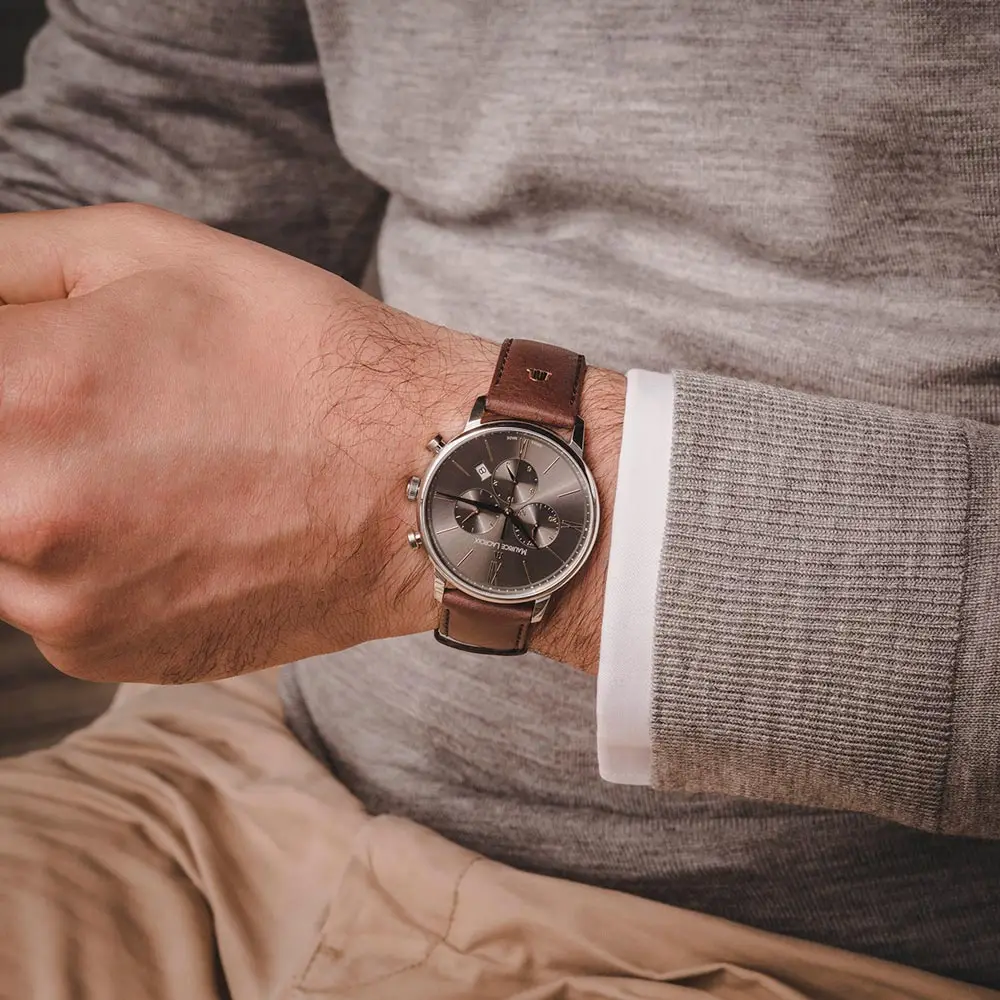 腕表搭载 瑞士石英机芯 Ronda 5040.D,具备计时功能及 4:30 位置日期显示。拥有 5 ATM (50 米) 防水性能,并配有 棕色小牛皮表带与针扣,兼具舒适与优雅。Eliros Chronograph EL1098-SS001-311-1 诠释了现代优雅与瑞士制表传统的完美融合。