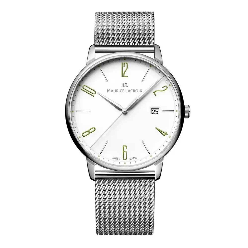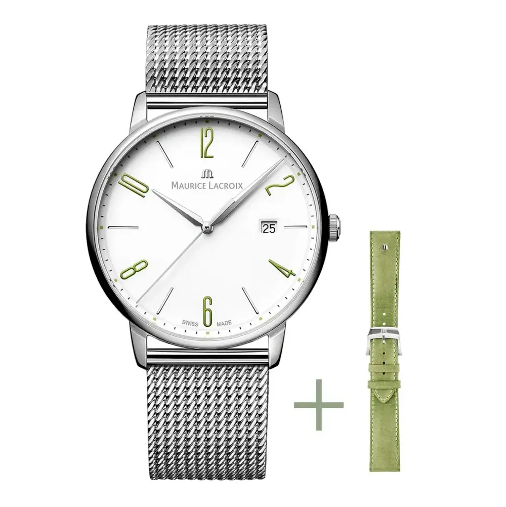Maurice Lacroix Eliros Date 40mm Strap Set EL1118-SS00S-120-D 完美融合了优雅、实用与瑞士精准。作为 Eliros 系列的一员,此款腕表专为追求多变风格与现代品位的男女打造,配备可更换表带礼盒套装。