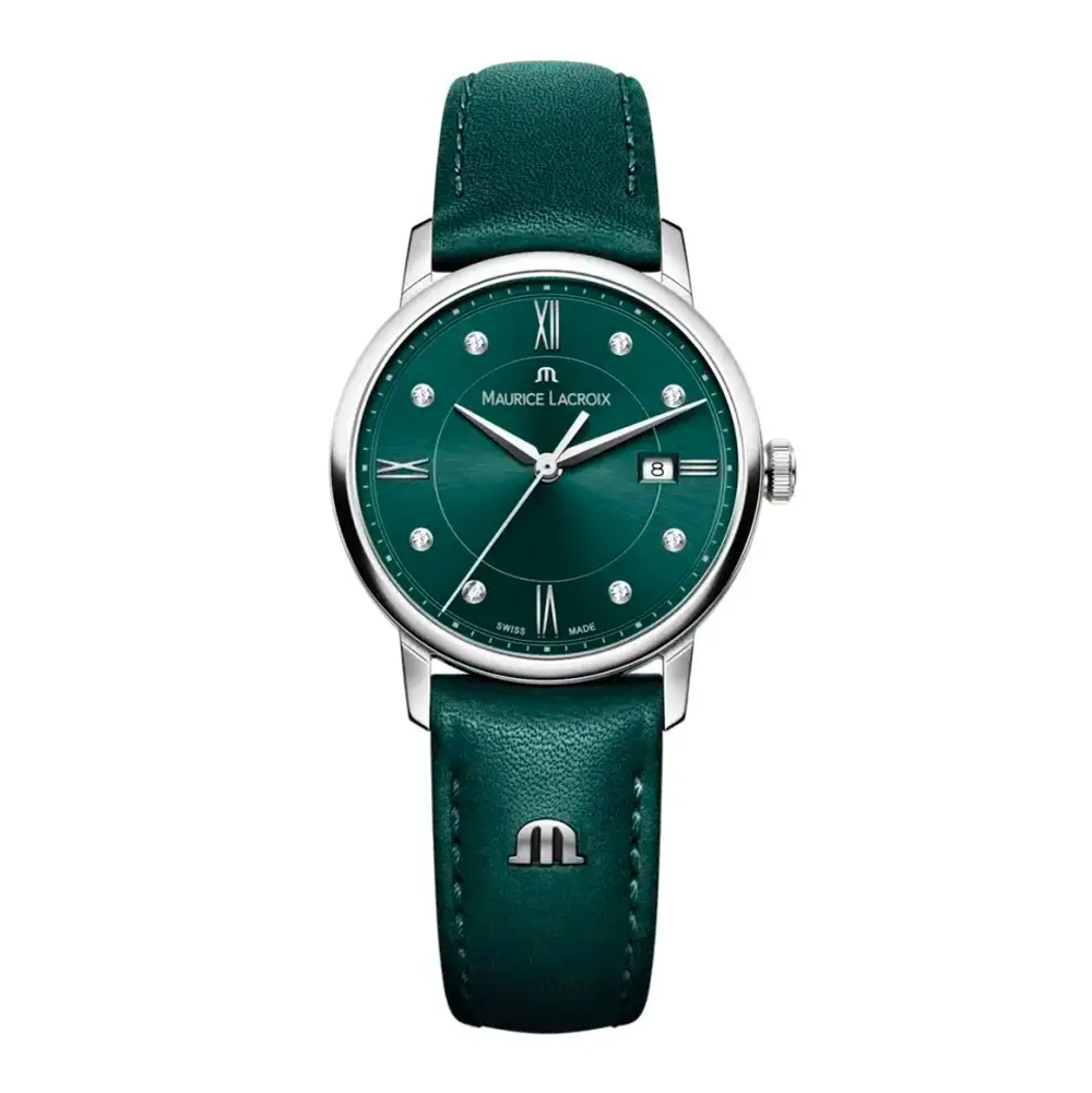 Maurice Lacroix Eliros Date 30mm (ref. EL1094-SS001-650-5) 完美融合了 优雅设计、现代风格与瑞士精准工艺。其 30 毫米精钢表壳 线条柔和,尺寸恰到好处,专为女性腕间打造,展现精致与时尚气质。