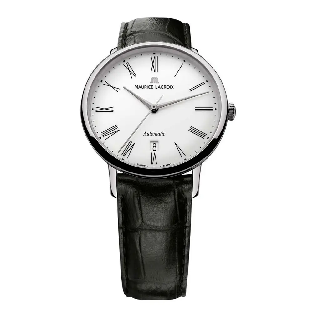 Maurice Lacroix 的 Les Classiques Tradition 系列腕表融合了经典美学与精湛工艺。其 38 毫米不锈钢圆形表壳,尺寸适中,既适合日常佩戴,又不失正式场合的优雅格调。蓝宝石水晶玻璃具备出色的防刮性能,保护着精致的 白色模拟表盘,搭配纤细指针与 3 点钟位置的简洁日历窗。