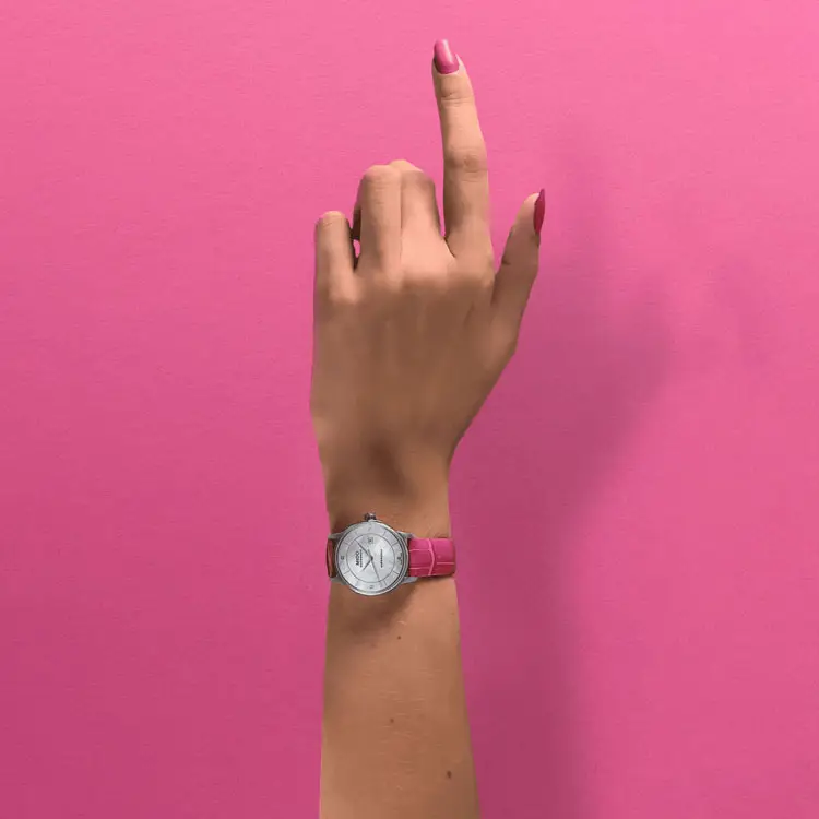 Mido Baroncelli Signature Lady Colours 腕表以其精致优雅与现代风格脱颖而出,适合追求独特且高雅配饰的女性。直径30毫米的圆形表壳采用高品质不锈钢打造,搭配 耐用的蓝宝石水晶玻璃,确保出色可读性与耐刮性。