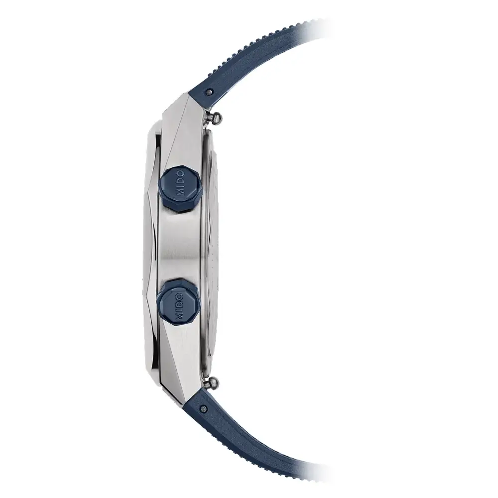 Mido Multifort 8 Two Crowns 体现了运动风格与简约设计的绝佳结合,灵感源自建筑美学。38.4 × 40 毫米的圆形表壳采用高品质不锈钢制成,并配备蓝宝石水晶玻璃,确保耐刮和卓越可读性。优雅的 不锈钢表圈 与腕表的动感风格相得益彰。
