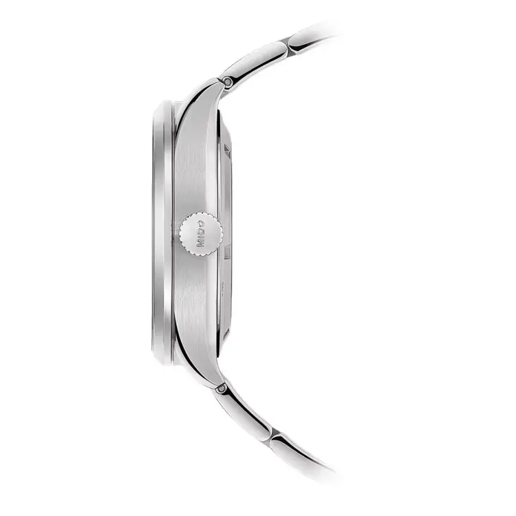 该型号配备 优雅的银色不锈钢表链和舒适的折叠扣,佩戴安全舒适。腕表 防水等级 10 ATM(100 米),不仅适合日常佩戴,也适合包括游泳在内的运动活动。