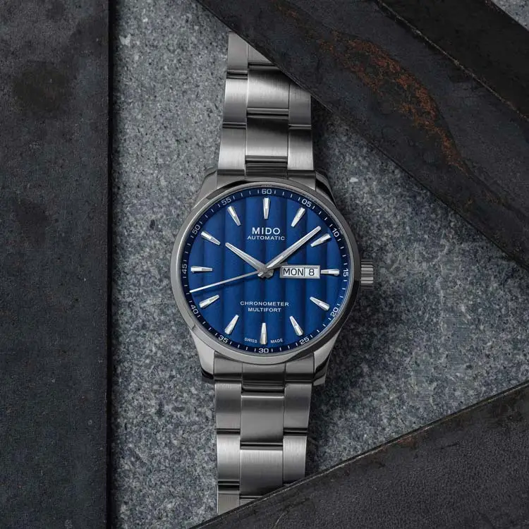 Mido Multifort Chronometer 1 凭借现代运动外观与瑞士 COSC 认证的高精准度脱颖而出。圆形表壳采用高品质不锈钢制成,并配备耐用的蓝宝石水晶玻璃,确保卓越的可读性和防刮性能。