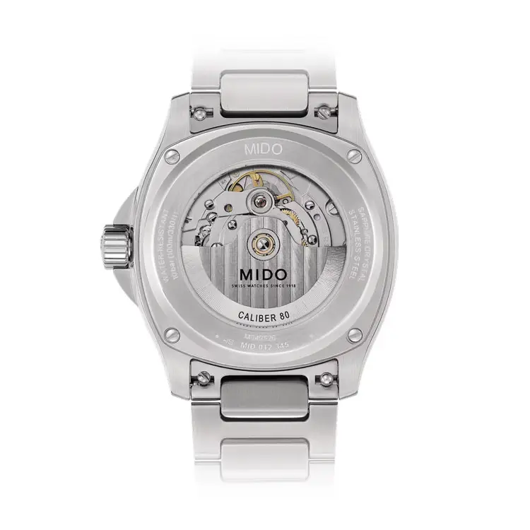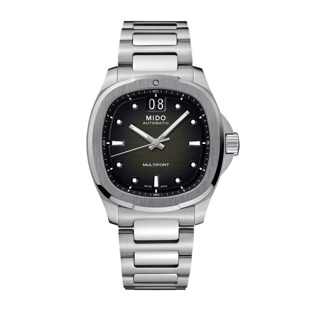 内部搭载 Mido Caliber 80 Big Date 自动机芯,拥有 长达 80 小时动力储备 和 硅质游丝,确保精准与防磁。不锈钢表链 配以 蝴蝶扣,舒适稳固。Mido Multifort TV Big Date 是创新与传统的结合,彰显独特个性与格调。