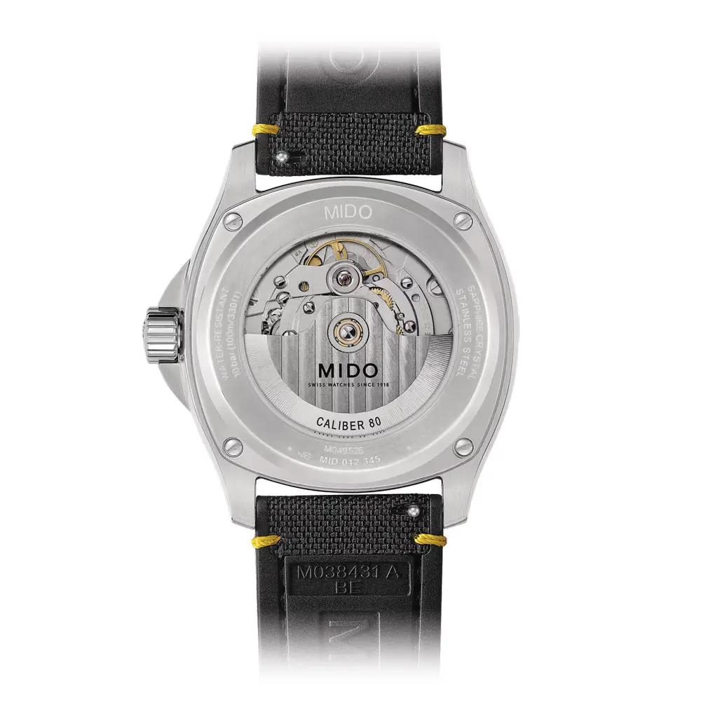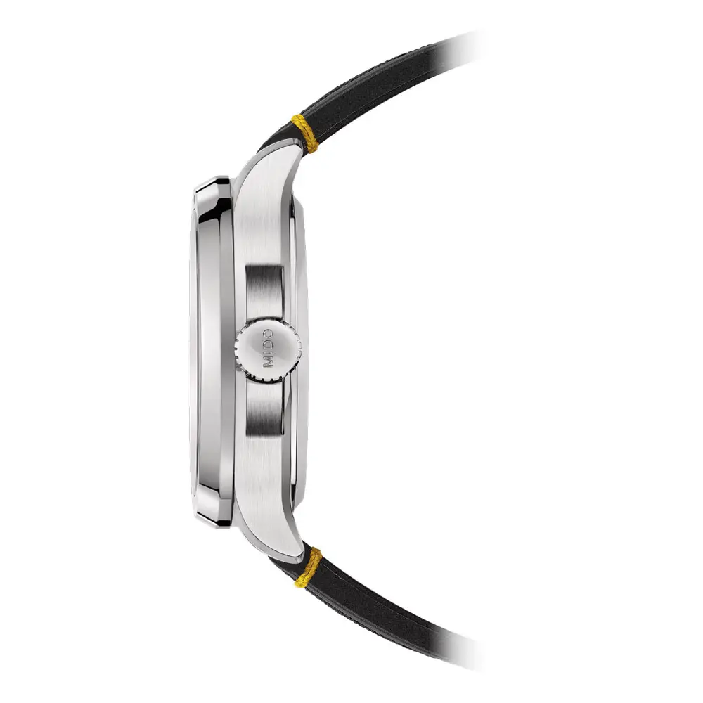 腕表内部搭载自动 Calibre 80(ETA C07) 机芯,提供 长达 80 小时的动力储备,并配备 Nivachron™ 游丝,增强抗磁和抗震能力。机壳具备 100 米(10 bar)防水性能,并配有螺丝下压表冠。