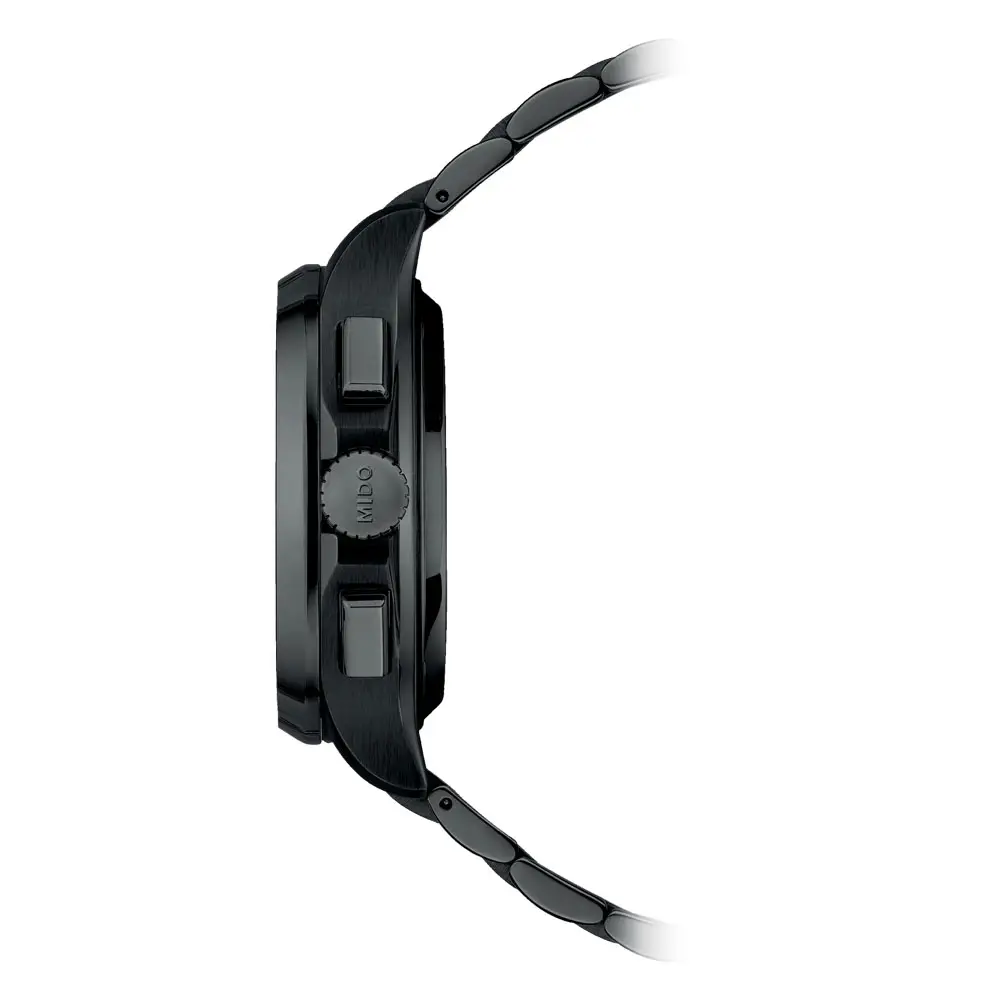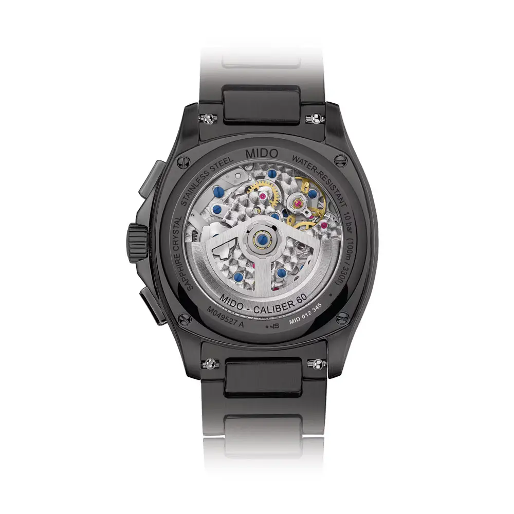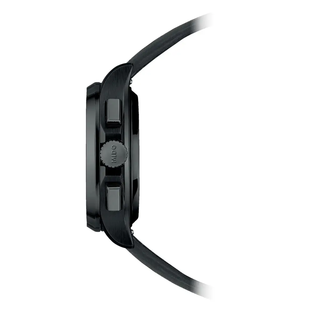 美度 Multifort TV 计时表 M049.527.33.081.00采用大胆的 "TV 形 "设计,并经过黑色 PVD 涂层处理。表壳尺寸为 41.2 毫米 × 42毫米,厚度为 14.3 毫米,兼具独特美感和佩戴舒适度。双面防眩处理的蓝宝石表镜、透明表盘和旋入式表冠确保了腕表的耐用性,而100 米的防水性能则使其成为日常佩戴的可靠伙伴。