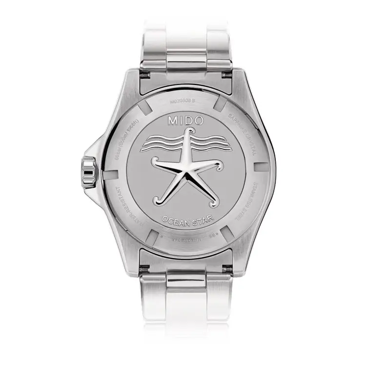 Mido Ocean Star 600 Chronometer 是一款专业潜水表,具有坚固的结构与卓越的精准度,专为严苛用户设计。直径43.5毫米的圆形表壳采用耐用不锈钢打造,搭配高级蓝宝石水晶玻璃,即使在极端环境下也能保持出色的可读性。
