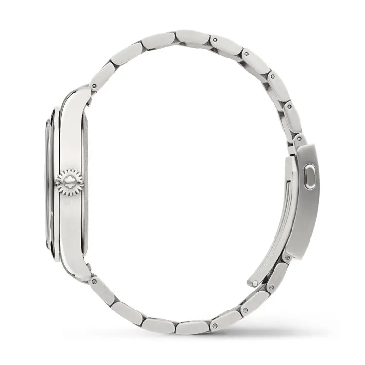 内部搭载 可靠的自动机械机芯,提供 约38小时动力储存,运作频率为 28,800次/小时(4 Hz)。具备 100米(10 ATM)防水性能,适合日常佩戴及户外活动。优雅的银色不锈钢表带配折叠式表扣,佩戴舒适又安全。