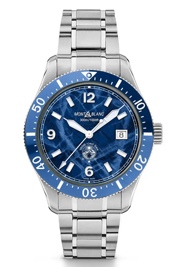 该系列最引人注目的特点是表盘上的冰冻纹理,灵感来自勃朗峰的冰川地貌,有蓝色、绿色、黑色或灰色可供选择。腕表采用单向月轮,旋入式表冠,防水深度达 300 米,41 毫米精钢表壳坚固耐用。内部搭载自动机芯,可提供 38 小时动力储备。
