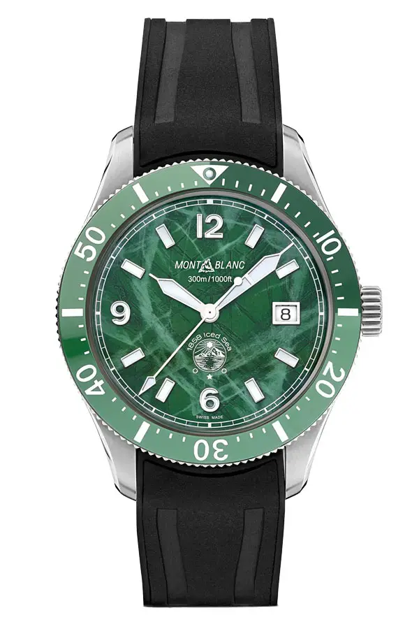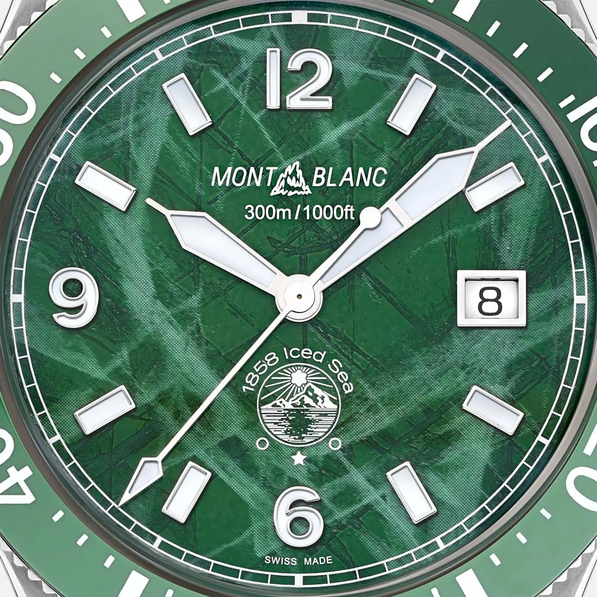 该系列最引人注目的特点是表盘上的冰冻纹理,灵感来自勃朗峰的冰川地貌,有蓝色、绿色、黑色或灰色可供选择。腕表采用单向月轮,旋入式表冠,防水深度达 300 米,41 毫米精钢表壳坚固耐用。内部搭载自动机芯,可提供 38 小时动力储备。