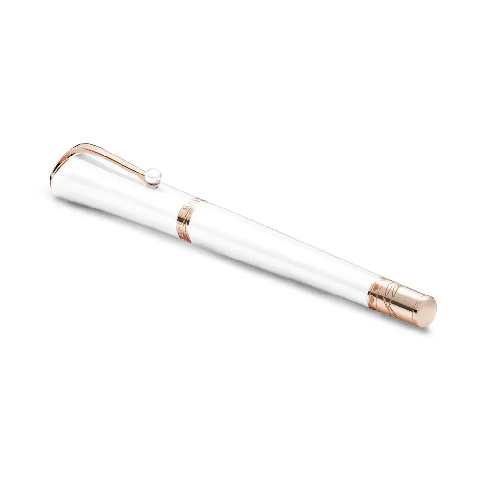 笔身和笔帽采用 白色珍贵树脂(precious resin) 制作,灵感来自玛丽莲·梦露在电影 The Seven Year Itch 中的经典白色连衣裙。柔和的色调与优雅线条体现了女性化的设计风格。