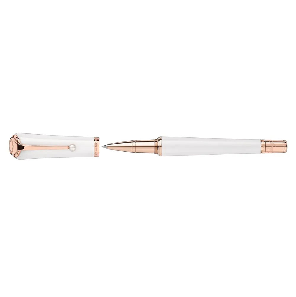 设计还配有 玫瑰金镀层笔夹并饰有珍珠,象征玛丽莲·梦露对珍珠首饰的喜爱。笔帽顶部饰有经典 Montblanc 标志,彰显品牌的尊贵与品质。Montblanc Muses Marilyn Monroe Special Edition Pearl 不仅是一款优雅的书写工具,也是极具收藏价值的作品。