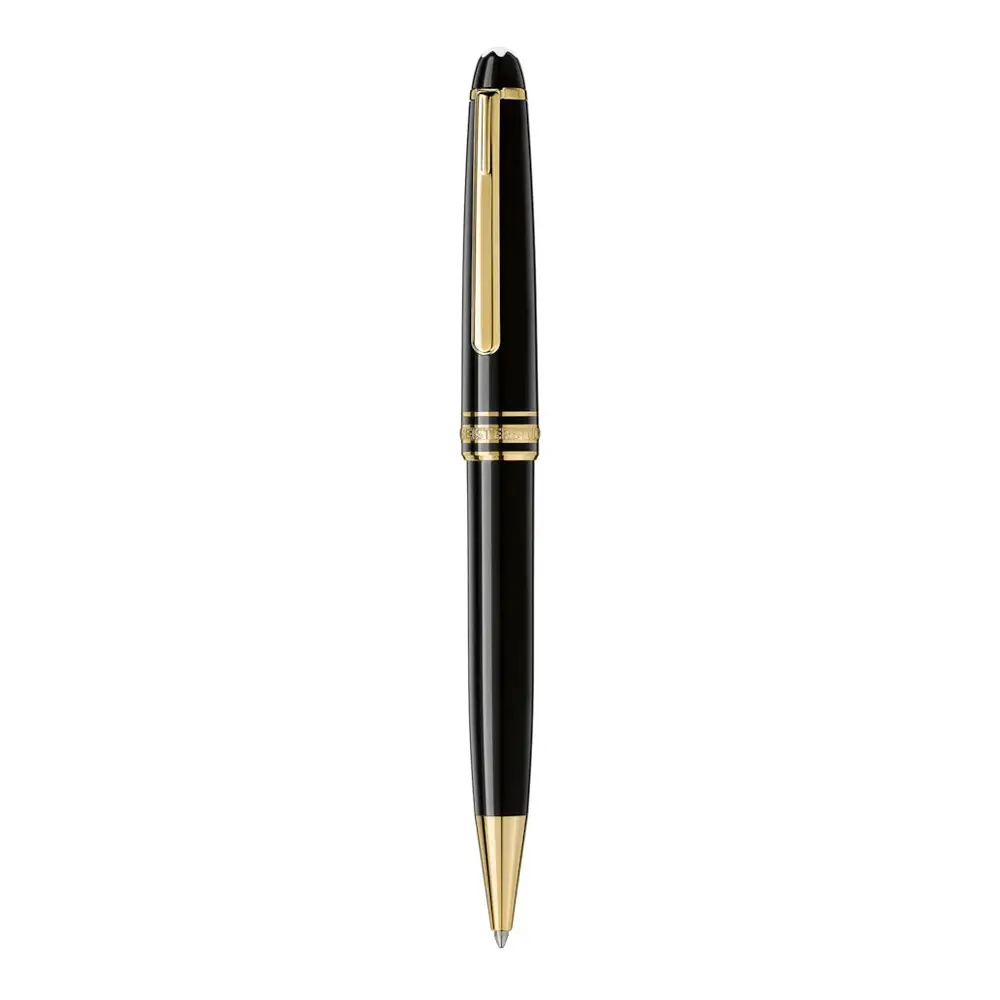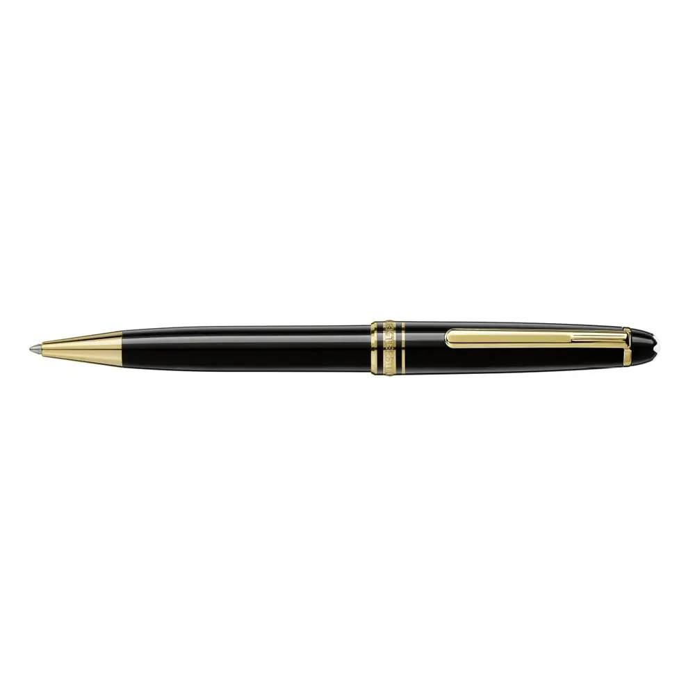这款经典的 万宝龙 Meisterstück Classique 圆珠笔 体现了 永恒优雅与精湛工艺。笔身采用 黑色贵重树脂 制成,并饰以 镀金细节,展现出尊贵与格调。