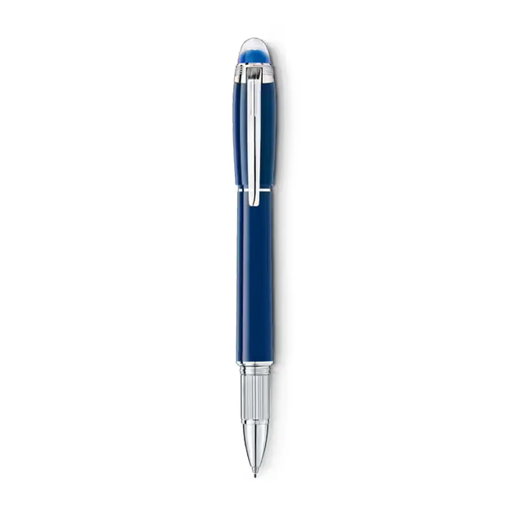 这款 万宝龙 StarWalker 蓝色星球 Doué 签字笔 致敬我们共同的家园——地球的蓝色之美与脆弱。笔身采用 蓝色贵重树脂,象征深邃海洋,铂金镀层金属笔帽刻有精细水流纹饰,展现自然的律动。