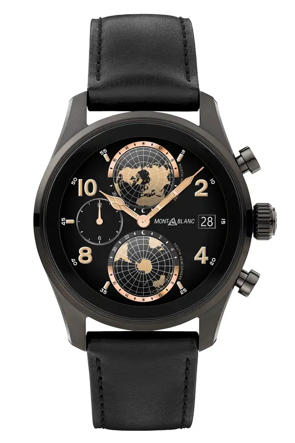 Summit 3 采用圆形钛金属表壳,可更换皮革、橡胶或织物 表带,表盘设计灵感源自万宝龙的机械表款,确保了经典腕表的优雅外观。内置谷歌 Wear OS,兼容安卓和 iOS 系统,可访问通知、健康追踪、健身功能、导航和非接触式支付。