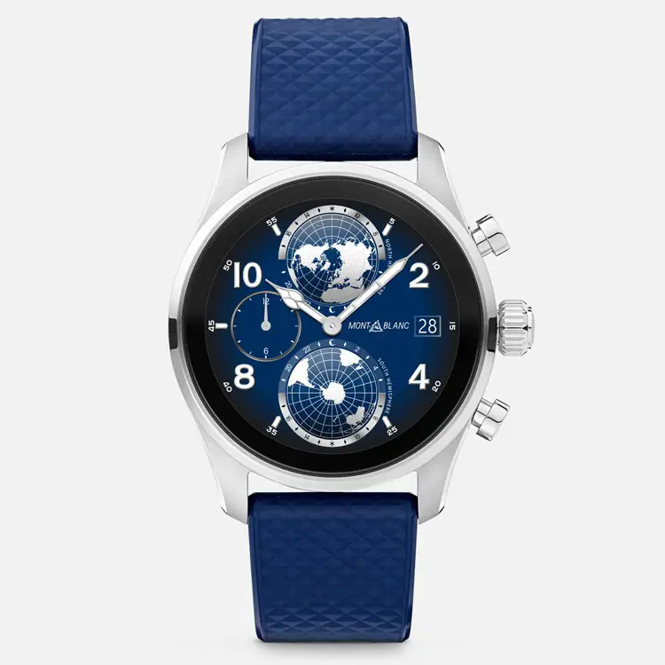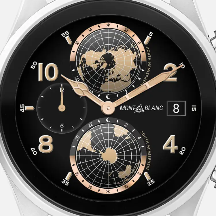 Summit 3 采用圆形钛金属表壳,可更换皮革、橡胶或织物 表带,表盘设计灵感源自万宝龙的机械表款,确保了经典腕表的优雅外观。内置谷歌 Wear OS,兼容安卓和 iOS 系统,可访问通知、健康追踪、健身功能、导航和非接触式支付。