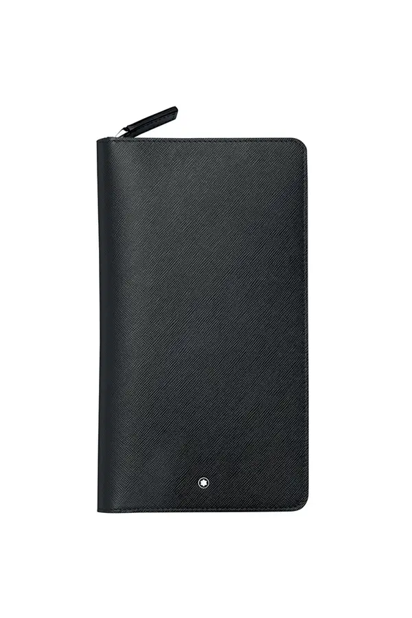 瑞士品牌万宝龙的 Sartorial 长方形钱包采用小牛皮制成。提花衬里上印有制造商的徽章,这也是该产品正面的装饰。钱包内有 16 个卡袋、2 个纸币袋和一个笔圈。钱包配有拉链,没有零钱袋。