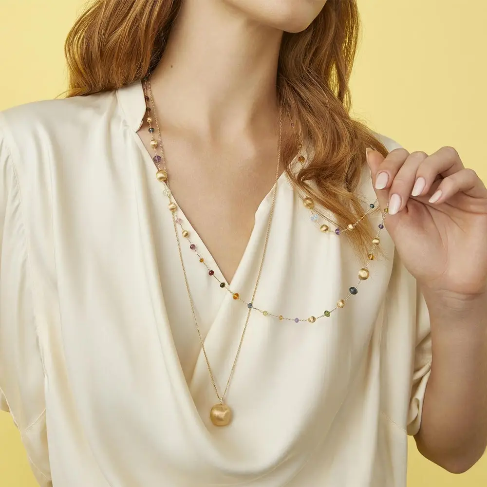 Marco Bicego Africa CB2230 MIX02 Y 项链展现意大利工艺与自然之美的完美融合。采用 18K (750/1000) 黄色黄金 制作,结合 亮面与哑光处理,长度 92 cm,垂坠自然、优雅动人。每一处细节均由工匠手工打造,展现 Africa 系列独特的艺术风格。
