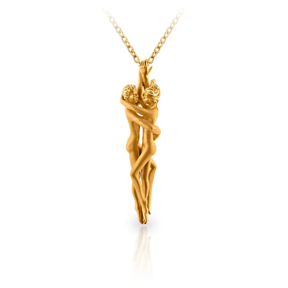 Carrera y Carrera Eden是一款超越传统项链概念的珠宝,成为一个故事的载体--一个关于原始之爱、联系和人类亲密关系的故事。这条独特的18K 黄金项链描绘了亚当和夏娃的雕刻细节,他们紧紧相拥,象征着团结和渴望。