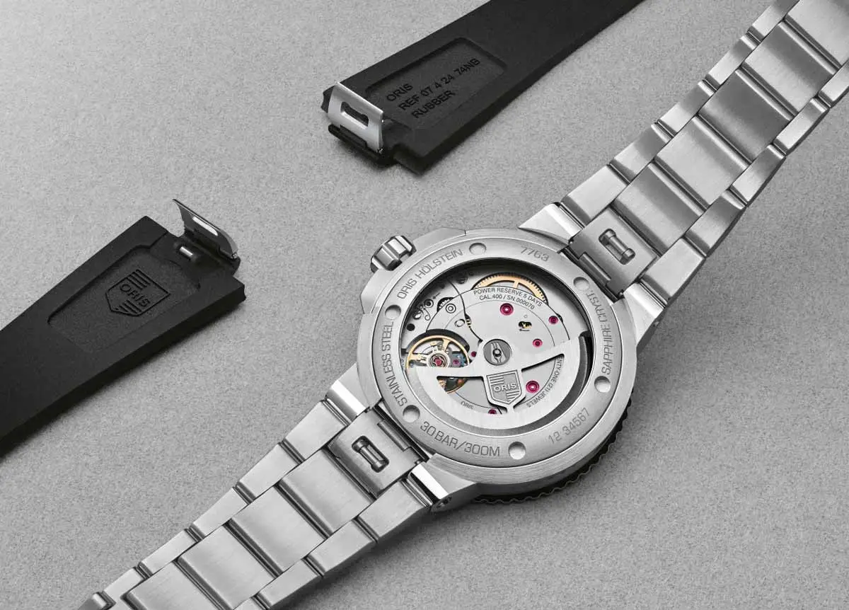 Aquis表款配有一体式表链或橡胶表带、独特的刻度和夜光指针,以及精密的自动机 芯,其中包括Oris 400自制机芯,动力储备长达120小时。此外,该系列还提供GMT、日期、小秒针或深度计等复杂功能。