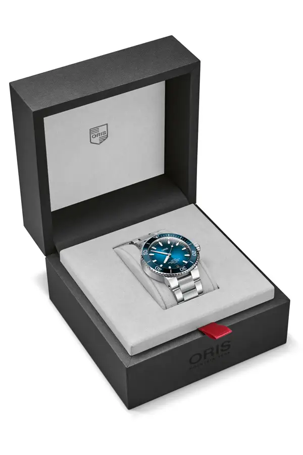 Oris Aquis是该品牌的旗舰潜水系列,集功能性、坚固结构和现代设计于一身。Aquis系列专为真正的水下部署而设计,防水深度达300米,配备旋入式表冠、单向月牙形表耳以及高抗震性和抗压性。
