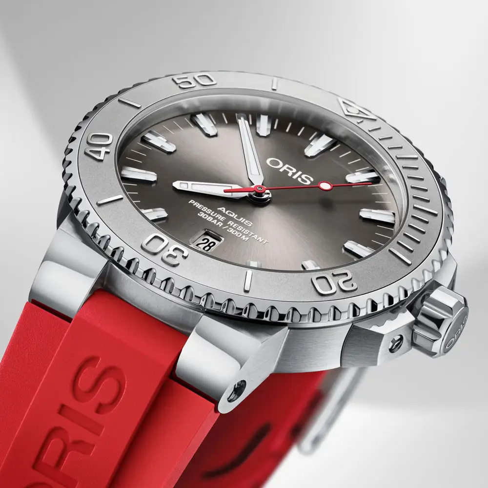 Oris Aquis是该品牌的旗舰潜水系列,集功能性、坚固结构和现代设计于一身。Aquis系列专为真正的水下部署而设计,防水深度达300米,配备旋入式表冠、单向月牙形表耳以及高抗震性和抗压性。