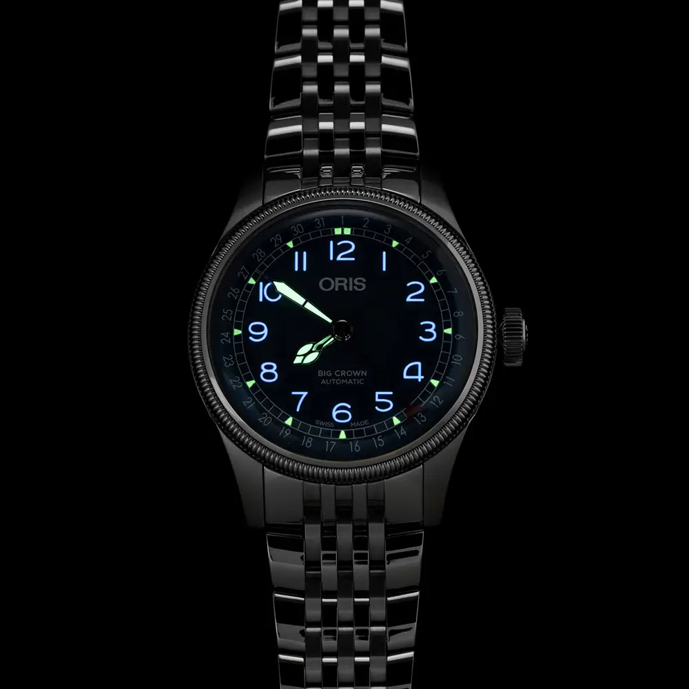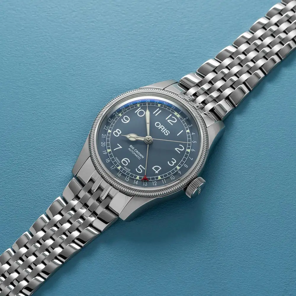 具备 50 米(5 巴)防水性能,配以 精钢表链(拉丝与抛光交替处理)及折叠表扣,Oris Big Crown Pointer Date 以 传统、可靠与精湛工艺 的完美融合,展现出永恒的飞行员风格。