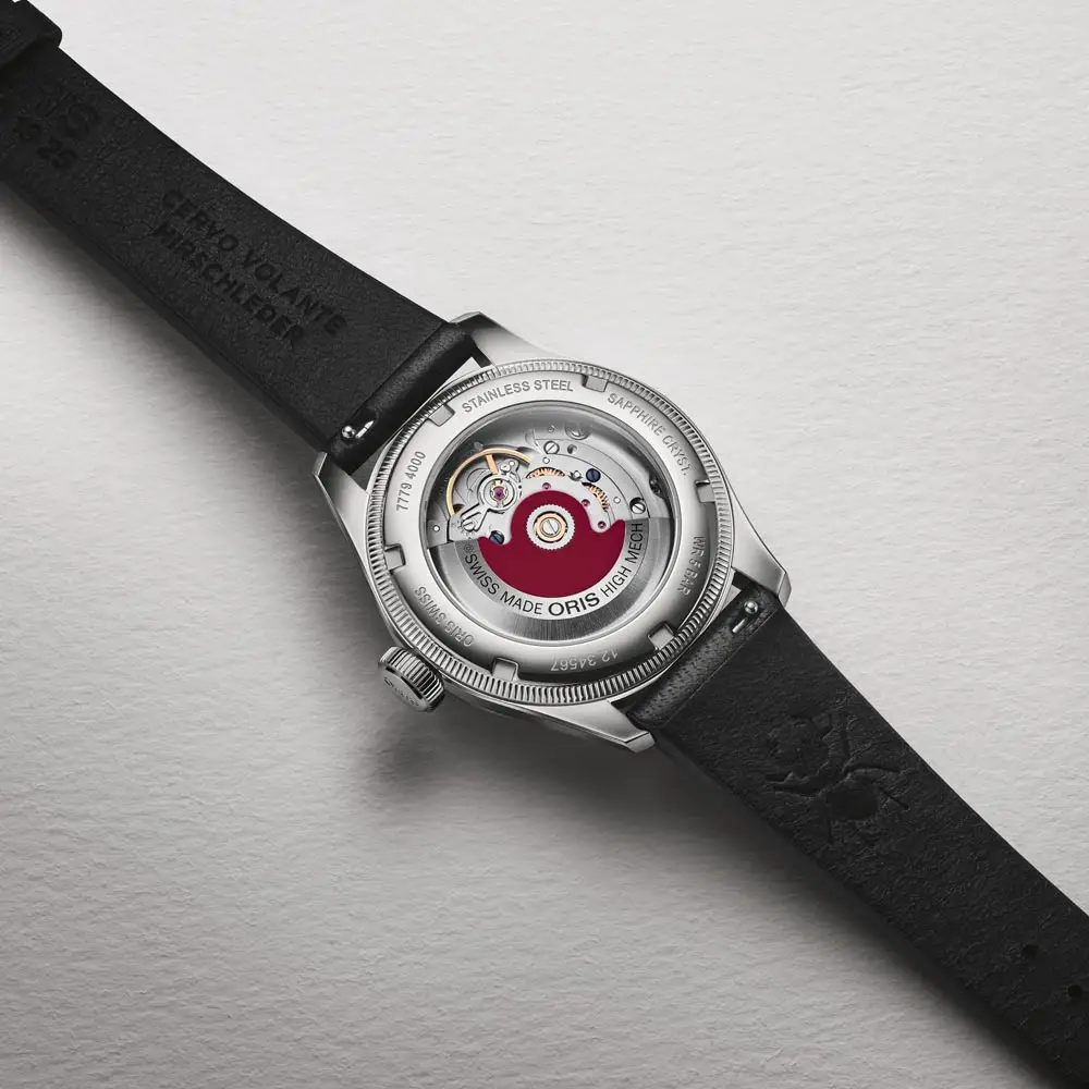 腕表内部搭载瑞士自动上链 Oris 754 机芯,以精准与可靠著称。机芯具备自动上链、停秒功能以及快速日期调校。机械结构展现了 Oris 的制表传统,使其成为机械腕表爱好者的理想之选。
