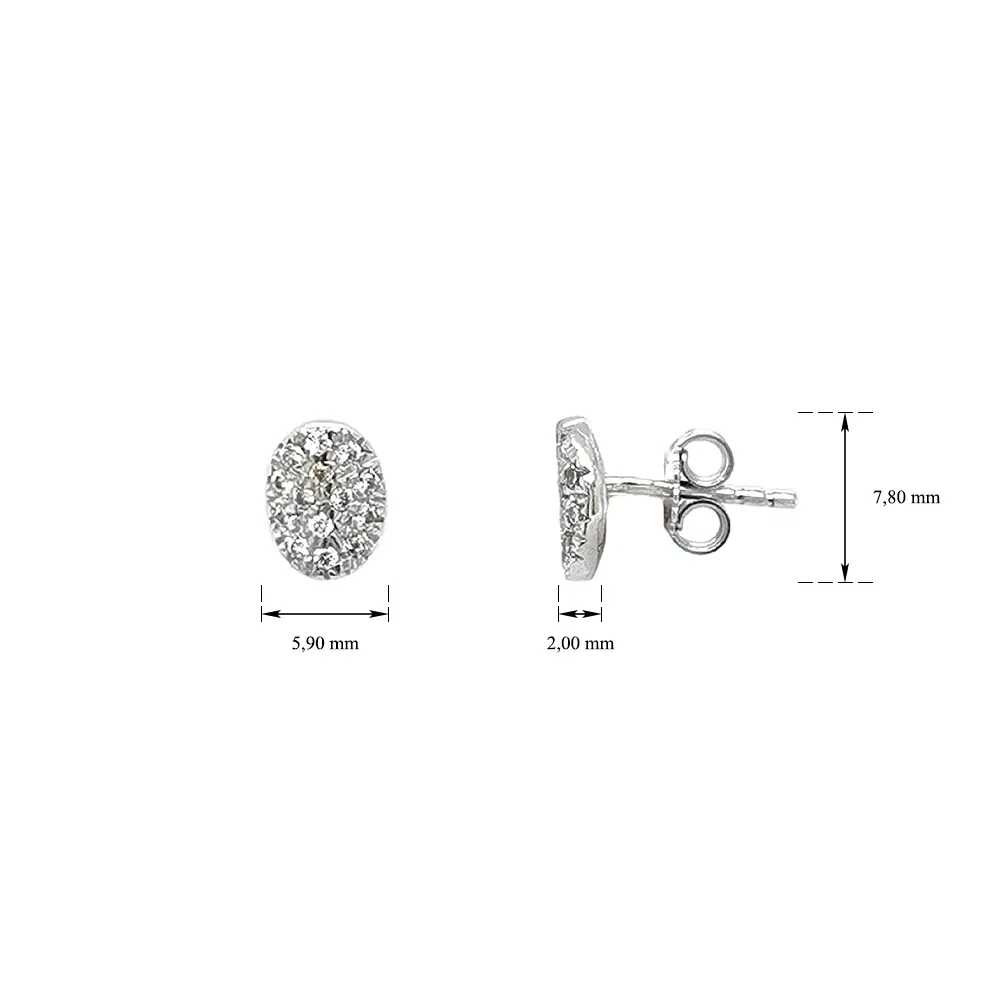 镶嵌闪亮锆石的椭圆形白金耳环