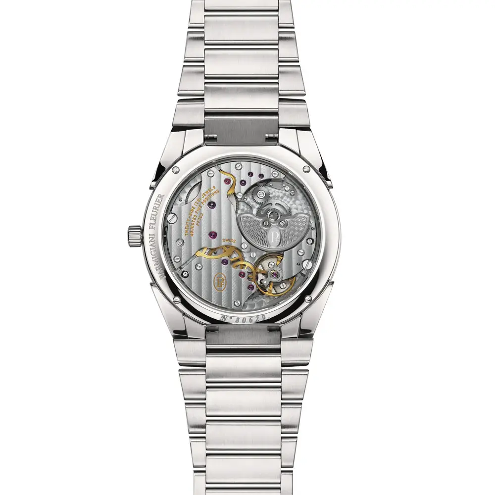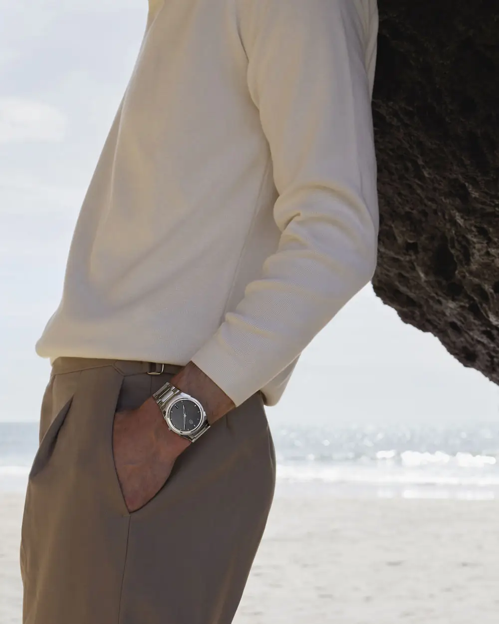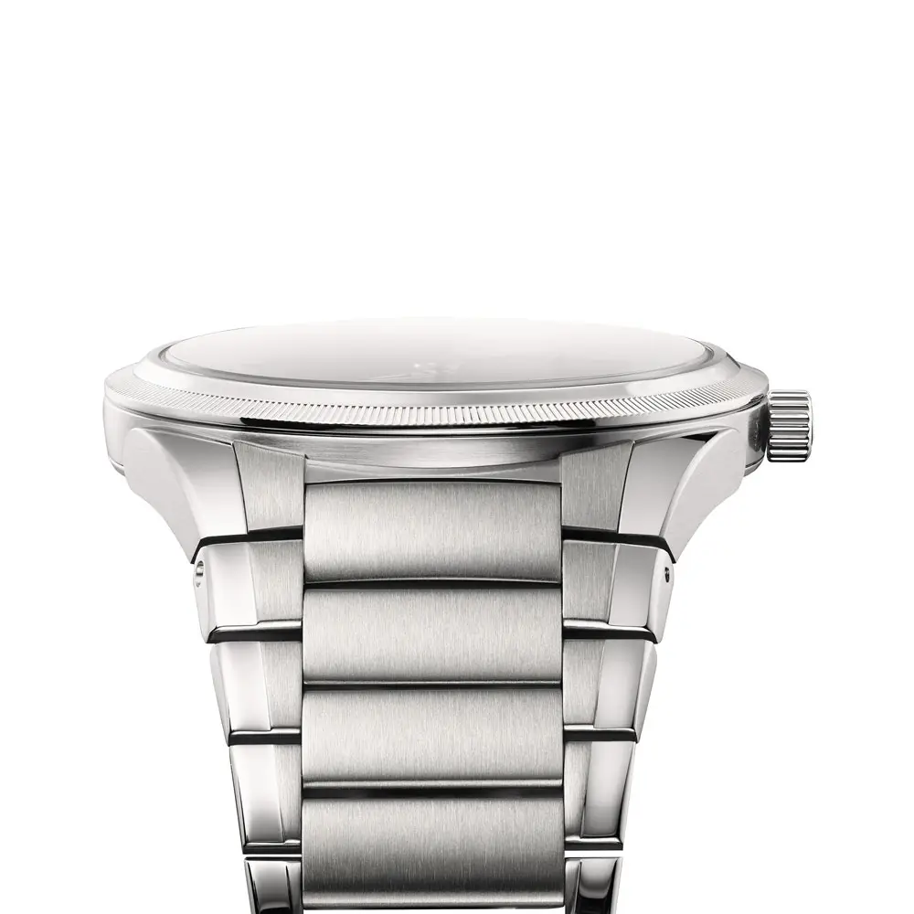腕表采用一体化精钢表链,与表壳无缝连接,佩戴舒适。腕表防水深度达 100 米,不仅适用于正式场合,也适合日常佩戴。该表款将吸引那些追求极简主义、精湛技术和永恒设计的人士。