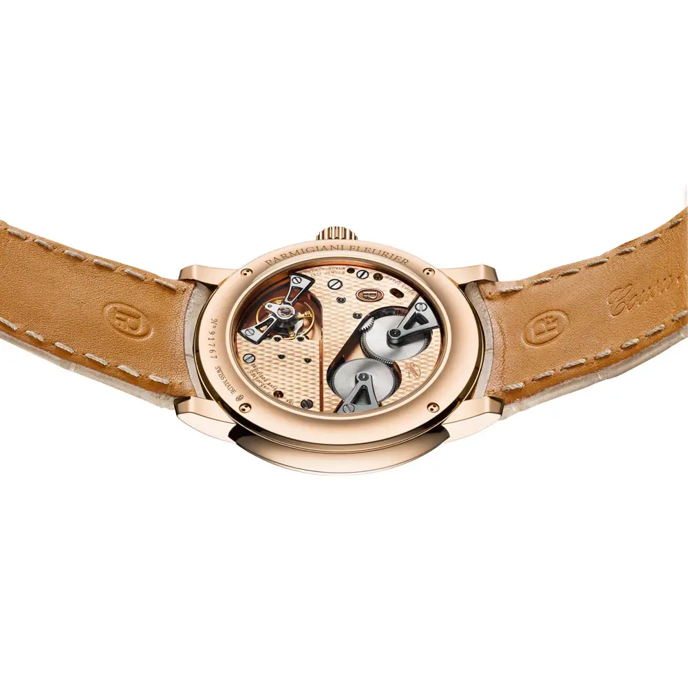 腕表搭载手动上链机芯 PF780,由 157 个零件和 27 颗红宝石组成。动力储存可达 60 小时,振频 4 Hz。透过蓝宝石表背,可以欣赏到精美的打磨工艺,包括 Côtes de Fleurier 装饰和抛光倒角。