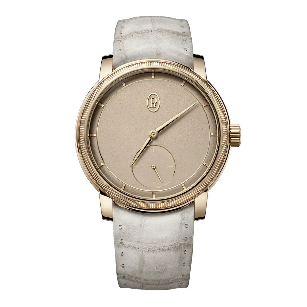 Parmigiani Toric Petite Seconde Rose Gold “Dune” 展现了纯粹的优雅与永恒的风格。表壳直径 40.6 毫米,采用 18K 玫瑰金 打造,其温暖色调与手工打磨的 “Dune” 金质表盘相得益彰。细腻的色彩仿佛沙丘般柔和,为腕表增添独特魅力。