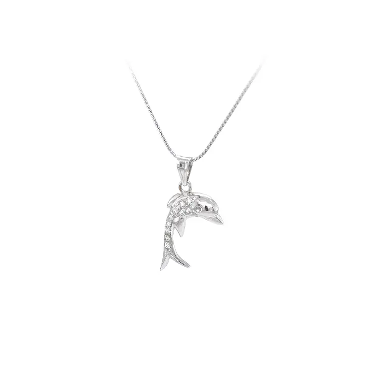 白金锆石海豚吊坠