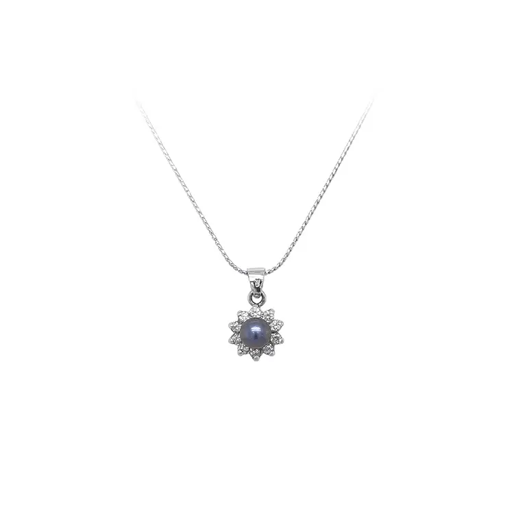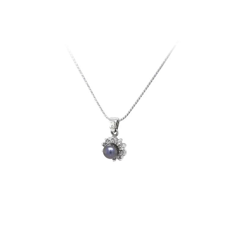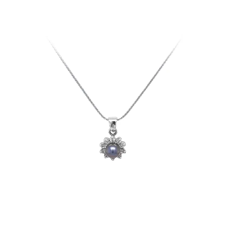 珍珠与锆石白金吊坠