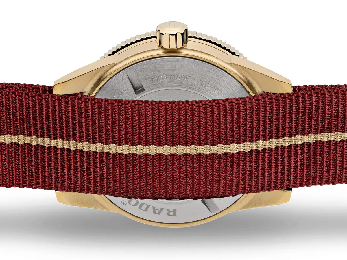 配备 棕色皮革表带,采用 EasyClip 快拆系统,更换轻松便捷。Rado Captain Cook Automatic Bronze R32504407 结合了 瑞士工艺、创新材料与冒险设计,是追求风格与性能完美平衡的男士理想之选。